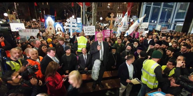 الجاليات والطوائف نحو ميدان مارتن بلاس وسط مدينة سيدنى يتقدمهم القيادات الكنسية بكافة طوائفها , مطارنة , أساقفة والعديد من كهنة الكنائس الذين دعوا للتظاهر السلمى والتعبير عن الغضب الشعبى تجاه قانون الإجهاض الجديد الذى ينص على عدم تجريم اغتيال الأجنحة حتى ساعات قليله من ولادتهم في محاولتهم لأسقاط القانون عبر بوابة مجلس الشيوخ بعد ان وضع أغلبية اعضاء البرلمان الذى يسيطر عليه حزب الأحرار بصمة العار والموافقة على تمرير مشروع القانون قبل عرضه على مجلس الشيوخ , وقد حضر التظاهرة قله من اعضاء البرلمان الذين صوتوا ضد مشروع القانون وعدد من الشخصيات العامة والسياسية