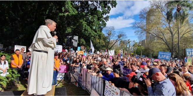 بهدف الإطاحة بقانون اغتيال الأجنة وسط توافد الالاف من مسيحى أستراليا من مختلف الجنسيات والطوائف للتظاهر منذ الصباح بحضور العديد من السياسيين ومنهم السيد تونى أبوت رئيس الوزراء الاسترالى الأسبق , القس فريد نايل رئيس الحزب المسيحى الديمقراطي وعدد من مطارنة وأساقفة الكنائس يتقدمهم الانبا انتوتى فيشر مطران الكنيسة الكاثوليكية بسيدنى
