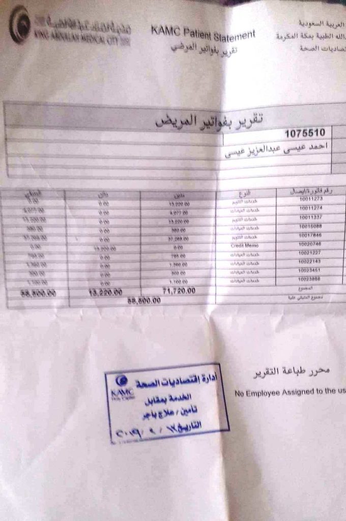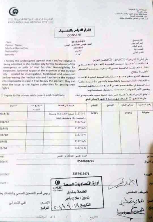 ونحن هنا ننشر الأوراق الرسمية ورقم حساب المستشفي ورقم جوال أحمد 0543907052