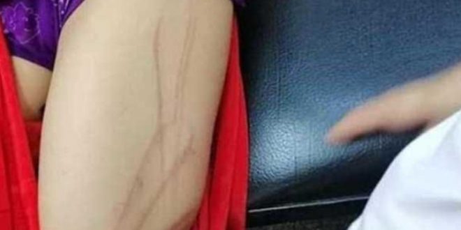 على قدمها فقط، واكتشف الأطباء وجود آثار تعذيب في أماكن متفرقة من جسدها، فأبلغوا مركز الشرطة لإثبات الواقعة.