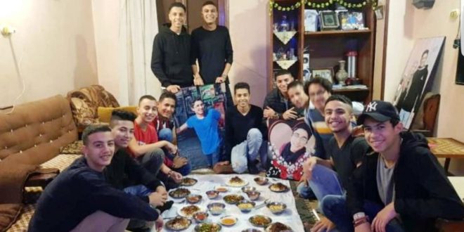بالتقاط صورة لهم داخل منزل محمود وهم يتناولون وجبة الغذاء