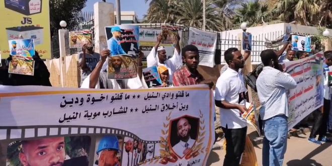 قام مجموعة من الشباب السودانى بوقفة إحتجاجية أمام وزارة الخارجية السودانية بالخرطوم للمطالبة بالإفراج عن محمد الماحي المقبوض عليه بمصر والحكم عليه بالحبس لمدة عام