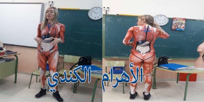 في واقعة غريبة بالمدراس الإسبانية، فاجأت معلمة طلابها بارتداء بدلة تحمل صورا مفصلة لأعضاء الجسد، خلال حصة الأحياء، بهدف شرح الماد للطلبة ومساعدتهم على سهولة الاستيعاب.