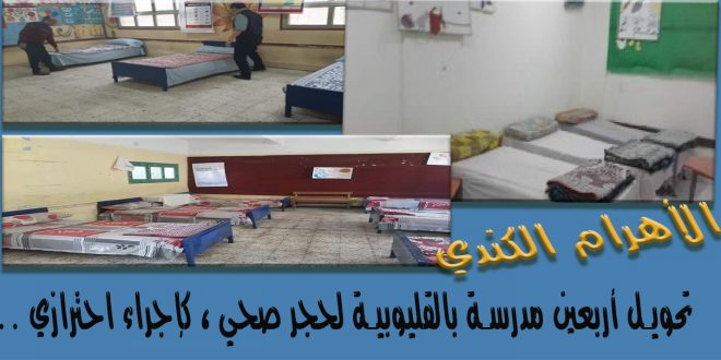 أعلنت مديرية التربية والتعليم بالقليوبية، تجهيز 40 مدرسة استعدادا لتحويلها إلى حجر صحي لاستخدامها في مرحلة متقدمة من الإجراءات الاحترازية لمنع تفشي فيروس كورونا المستجد “كوفيد19″، بواقع 3 مدارس في كل إدارة تعليمية.