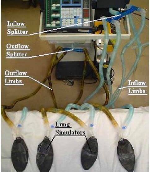 طريقة إعادة توصيل جهاز تنفس صناعي واحد ليخدم ٤ مرضى في العناية المركزة