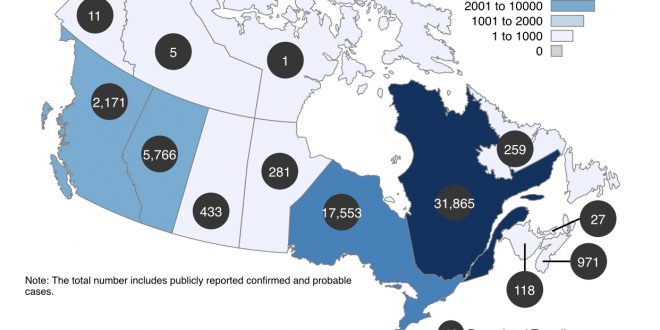 1- كيبيك عدد الإصابات 31.865 وعدد حالات الوفيات 2.205