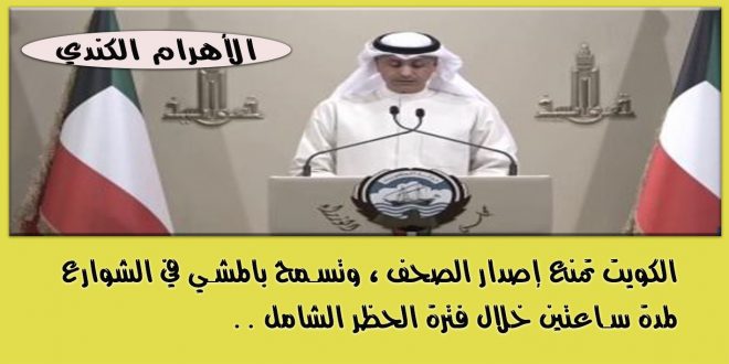 إجراءات أكثر صرامة تفرضها الكويت لمحاصرة فيروس كورونا ؛ حتى فرضت الحظر الشامل ، و منع إصدار الصحف ، وقد أصدرت بيانا توضح تفصيلا إجراءاتها الأخيرة ..