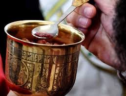 وهي الطريقة التي كانت تتبعها الكنائس منذ انتشار وباء كورونا عن طريق وضع قليل من الدم على الجسد ليتم التناول مرة واحدة.
