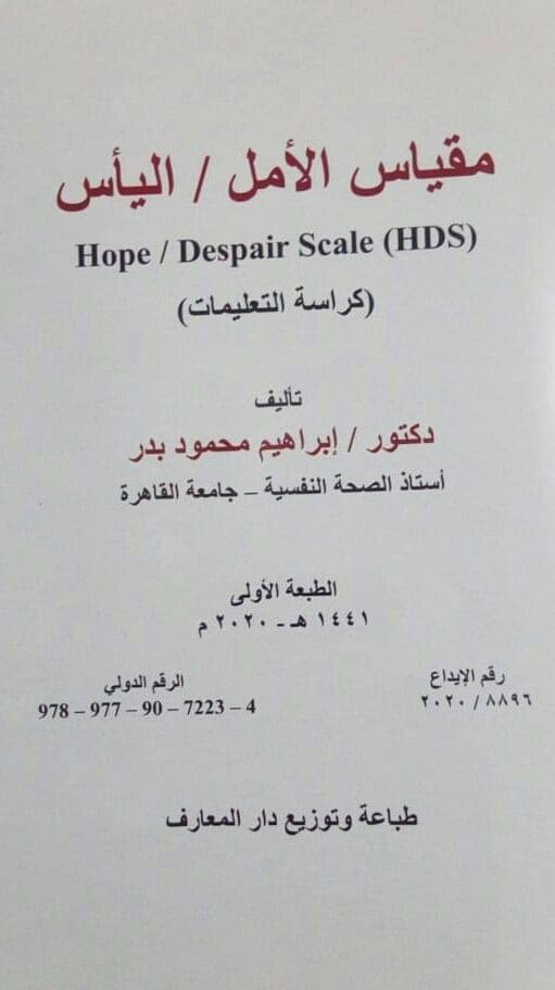 استقبلت المكتبة العربية أحدث مؤلفات الدكتور إبراهيم محمود بدر، أستاذ الصحة النفسية المتفرغ بجامعة القاهرة، بعنوان “مقياس الأمل / اليأس” و “مقياس التوجه نحو المستقبل / قلق المستقبل”.