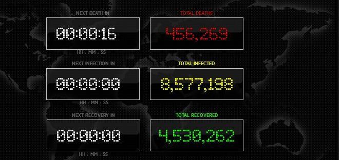 بأن هناك حالة وفاة بفيروس كورونا كل 19 ثانية وحالة إصابة كل ثانية وحالة تعافي كل ثانية