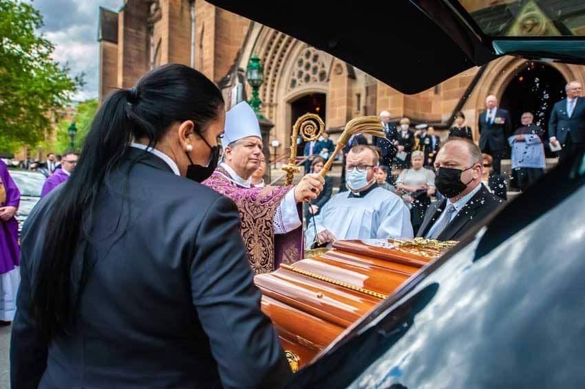 ترأس الانبا أنتوتى فيشر مطران ورئيس أساقفة الكنيسة الكاثوليكية فى سيدنى صباح اليوم الجمعة الموافق ٢٥ سبتمبر بكاتدرائية القديسة العذراء مريم الكاثوليكية القداس الإلهى وصلاة جنازة السيد جون فاهى الرئيس الأسبق لحكومة ولاية نيو ساوث ويلز , وزير المالية الفيدرالي الاسبق ومستشار الجامعة الأسترالية الكاثوليكية بحضور زوجة ,ابناء واحفاد الراحل وقد أقتصرت المراسم على حضور عدد يقدر ب ٣٠٠ شخص موزعون فى انحاء الكاتدرائية طبقاً للإجراءات الإحترازية التى فرضتها الحكومة فى مواجهة فيروس كورونا يتقدمهم أعلى القيادات السياسية الأسترالية والشخصيات العامة ومنهم السيد ديفيد هيرلي الحاكم العام الاسترالى وزوجته , حاكمة نيو ساوث ويلز السيدة مارجريت بيزلي , السيد بيتر كوسجروف الحاكم العام السابق لأستراليا , السيد سكوت موريسون رئيس الوزراء الأسترالى وزوجته , السادة رؤوساء الوزراء السابقين لأستراليا جون هاورد , مالكولم تورنبول وتوني أبوت كما حضرت السيدة جلاديس بريجيكليان رئيسة وزراء ولاية نيو ساوث ويلز والسيدة جودي مكاي رئيسة حكومة الظل لولاية نيو ساوث ويلز .