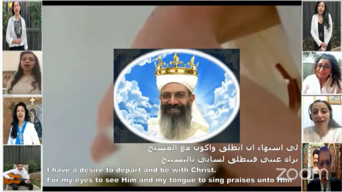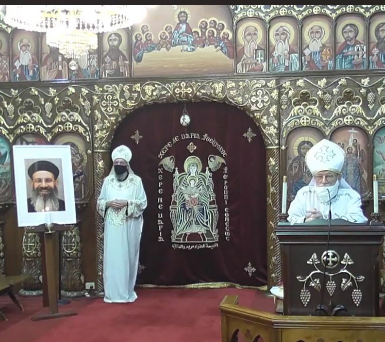 وذلك بالقداس الإلهى بحضور كهنة الكنيسة وأسرة المتنيح القمص مكاريوس وعدد محدود من شعب وشمامسة الكنيسة بسبب الاجراءات التى فرضتها الحكومة الأسترالية فى مواجهة فيروس كورونا , وقد أقامت الكنيسة حفل تأبين أون لاين عبر تطبيق زووم مساء اليوم الاحد شارك فيه عدد من كهنة إيبارشية ملبورن , شمامسة , شباب وشعب الكنيسة حيث تحدثوا عن صفات , ذكريات واعمال المتنيح القمص مكاريوس وهبة مصحوباً بعرض عدد من الصور التذكارية ومقاطع فيديو له منها , سيامته كاهناً على يد مثلث الرحمات قداسة البابا شنودة الثالث .