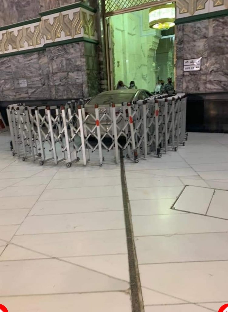 وتحركت السيارة على نحو مُسرع في الساحات الخارجية للحرم المكي، بينما أسرع رجال الأمن للحاق بها،