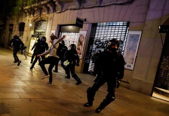 وذكر المتحدث باسم شرطة إقليم قطالونيا موسوس ديسكوادرا أن الشرطة تصدت للمتظاهرين لكنها لم تهاجمهم، وفى وقت سابق، نظم نحو 700 شخص مظاهرة سلمية فى أحد شوارع المدينة الرئيسية.