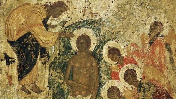 وفي مشهد تاريخي هو يوحنا المعمدان والمسيح المنحني تحت يده ليعمده، حل عليه الروح القدس في شكل حمامة، معلنا أنه المخلص الذي أتى ليحمل خطايا العالم، وتحدث الله قائلا: “وَصَوْتٌ مِنَ السَّمَاوَاتِ قَائِلًا: « هذَا هُوَ ابْني الْحَبِيبُ الَّذِي بِهِ سُرِرْتُ».” (مت 3: 17) “، وأيضًا “وَنَزَلَ عَلَيْهِ الرُّوحُ الْقُدُسُ بِهَيْئَةٍ جِسْمِيَّةٍ مِثْلِ حَمَامَةٍ. وَكَانَ صَوْتٌ مِنَ السَّمَاءِ قَائِلًا: «أَنْتَ ابْنِي الْحَبِيبُ، بِكَ سُرِرْتُ».” (لو 3: 22).