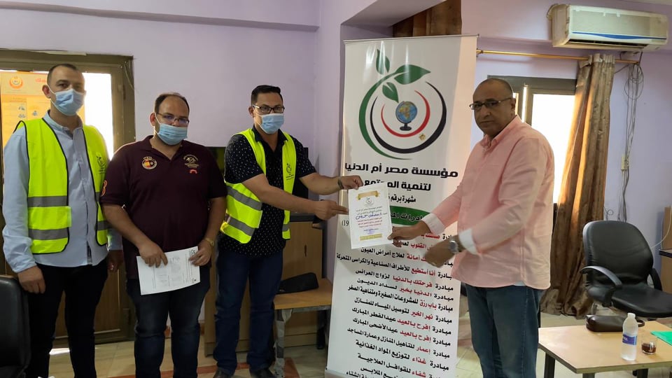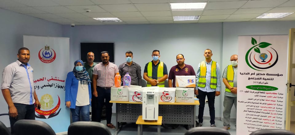 وأوضح مرضى أبو وردة رئيس مجلس أمناء مؤسسة مصر أم الدنيا، أن المؤسسة قامت بتسليم جهاز مولد أكسجين ومستلزمات طبية مثل كمامات وفيس شيلد وبدل واقية وجاون وسرنجات وكحول وصابون سايل واوفر شوز وأوفر هيد لمستشفى الحميات بالأقصر ومستشفى القرنة المركزى. فيما بين أحمد السماك المدير التنفيذى لمؤسسة مصر أم الدنيا، أن ذلك يأتى ضمن مبادرة صحتك بالدنيا لمكافحة فيروس كورونا، والتى تشمل دعم مستشفيات الحجر الصحى وتعقيم القرى والمصالح الحومية وأماكن التجمعات وتوزيع الكراتين الغذائية على العمالة غير المنتظمة التى تاثرت بجائحة فيروس كورونا.