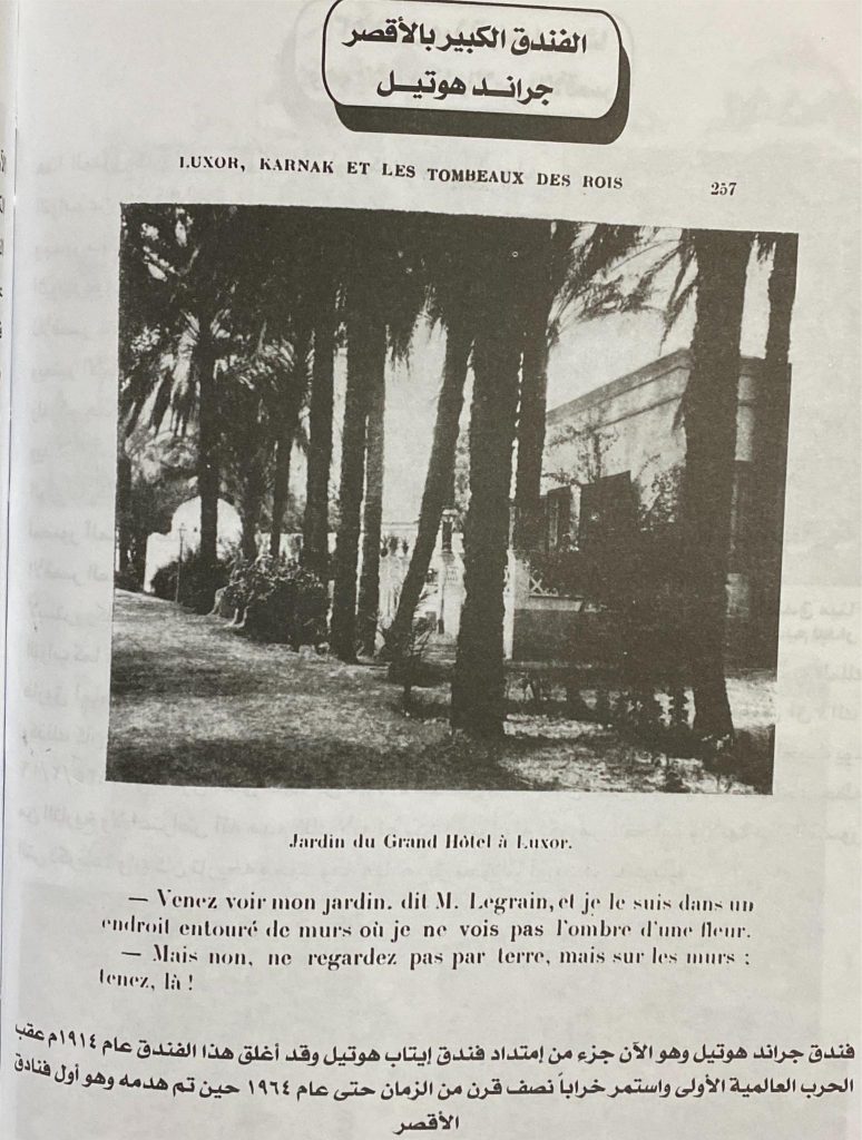 وعلى يد هذه الشركة تم اغتيال هذا الفندق العريق والمبنى كله ولايزال إطلالاً تنعق فيه البوم وتحوم فيه الغربان وسكنته الأفاعي والجرزان ، ولايزال يبحث عن حل!!؟؟ لقد خرب جراند هوتيل عام ١٩١٤ م واستمر خراباً نصف قرن كاملاً حتى ١٩٦٤م حين تم بناء شاليهات فندق سافوى ثم ألحق بفندق إيتاب بعد ذلك ، ويتساءل أبناء الأقصر هل ننتظر نصف قرن حتى يعمر هذا الفندق وواجهته على نيل الأقصر العظيم!!؟؟ والمؤلم أن السياح الذين اعتادوا زيارة الأقصر سنوياً وكان يروقهم النزول في سافوي يشاهدون المبنى خراباً ويتحسرون على الهدم وخاصة الإيطاليين والألمان منهم … ولقد شاهدت البعض من هؤلاء السياح يتساءل عن بعض العمال الذين كانوا في هذا الفندق وتربطهم صداقات معهم.