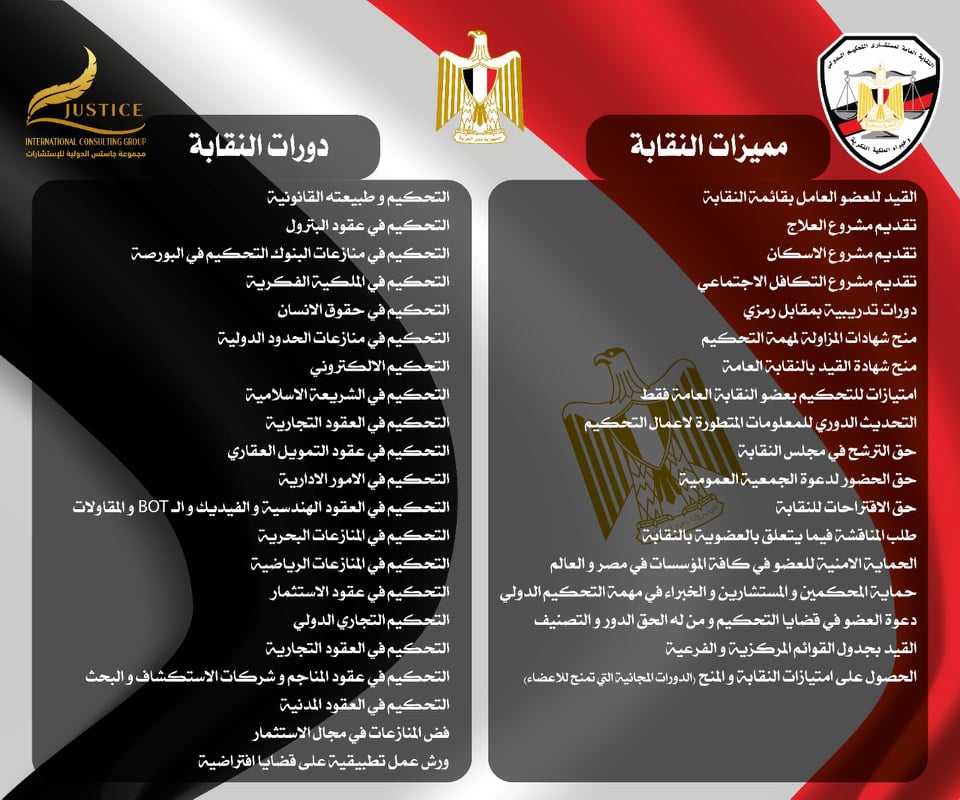 والاتصال والاستفسارت والخدمات لنقابة مستشارى التحكيم