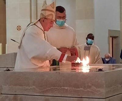 وفي22 أغسطس 2021م قام أسقف مونستر الدكتور “فيليكس جين” بتدشين كنيسة القديس الأنبا أنطونيوس بعد أن قامت الأبريشية بترميمها وإعادتها إلى صورتها الأولى. وطبقًا لطقس الكنيسة الكاثوليكية قام الأسقف بإشعال خمس شمعات فوق مذبح الكنيسة إشارة إلى جروحات السيد المسيح الخمسة، مع وضع البخور في إشارة أيضًا إلى رائحة المسيح الذكية.