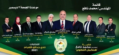 تم انشاء تراك للجري والمشي للمرة الأولى في تاريخ النادي. ومن المقرر أن يدخل المهندس محمد إبراهيم نافع بالقائمة التالية .. المهندس محمد نافع/ المرشح على مقعد رئيس مجلس الإدارة الأستاذ مجدي كمال/ المرشح على مقعد نائب رئيس مجلس الإدارة الأستاذ هاني فراج/ المرشح على مقعد أمين الصندوق الأستاذ طارق زين/ المرشح على مقعد عضوية مجلس الأدارة كابتن محمد زكي/ المرشح على مقعد عضوية مجلس الأدارة الأستاذ/ إيهاب رجب/ المرشح على مقعد عضوية مجلس الأدارة الأستاذ حسن نور الدين/ المرشح على مقعد عضوية مجلس الأدارة الأستاذة دينا هاني حسين/ المرشحة على مقعد عضوية مجلس الأدارة الأستاذ أحمد جمال أحمد/ المرشح على مقعد عضوية مجلس الأدارة تحت السن الأستاذ علي أحمد علي/ المرشح على مقعد عضوية مجلس الأدارة تحت السن