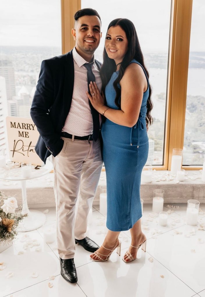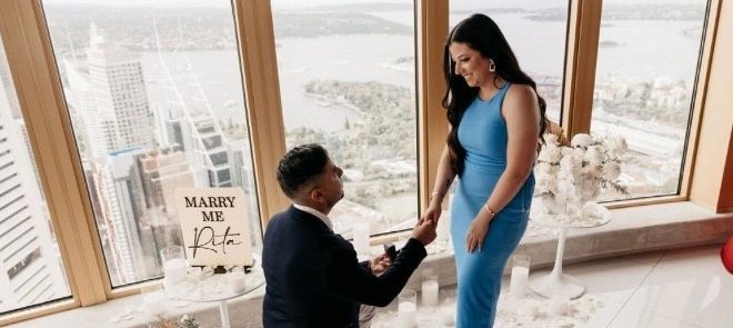 فاجأ الشاب بيتر أبن الكاتب الصحفى أشرف حلمى المقيم بأستراليا أول أمس الأحد الموافق ١٣ مارس ، حبيبته الآنسة ريتا جورج بخاتم الخطوبة في برج سيدنى الواقع وسط مدينة سيدنى عاصمة ولاية نيو ساوث ويلز بأستراليا ، وقد وصل الشاب الموقع على أرتفاع ما لا يقل عن ٣٠٠ متر بعد أن أعده مسبقاً بالورد بالإتفاق مع الإدارة