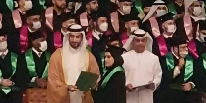 الدكتورة هاجر اثناء تسلم شهادة التخرج