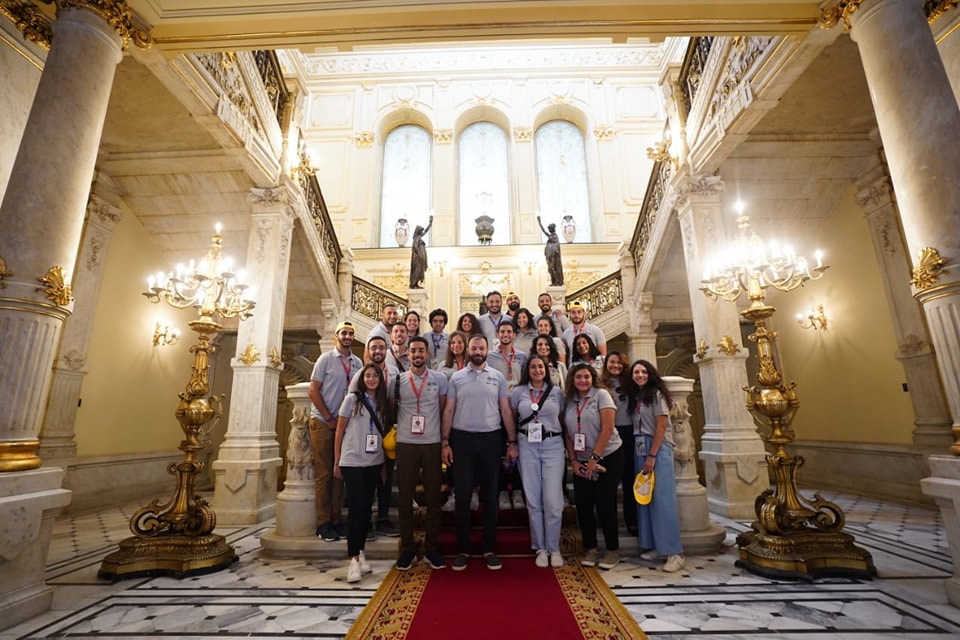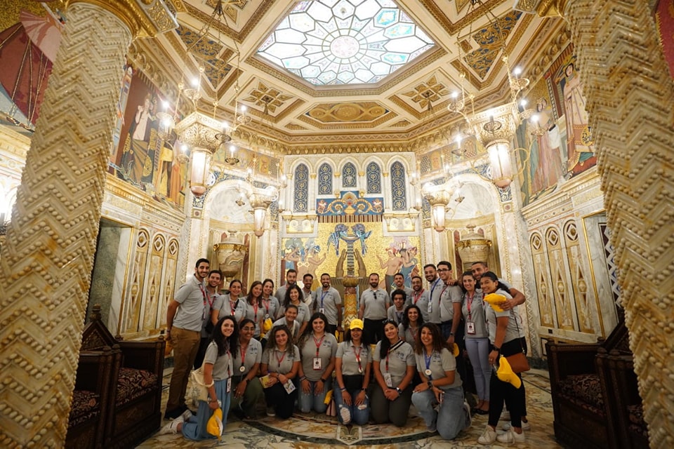 زار أعضاء ملتقى شباب لوجوس الثالث الخميس. 19 مسرى ١٧٣٨ش/ ٢5 أغسطس ٢٠٢٢م. قصر عابدين بالقاهرة، حيث استمعوا إلى شرح لمحتوياته، وكيف أنه يعبر عن أكثر من عصر من عصور مصر.