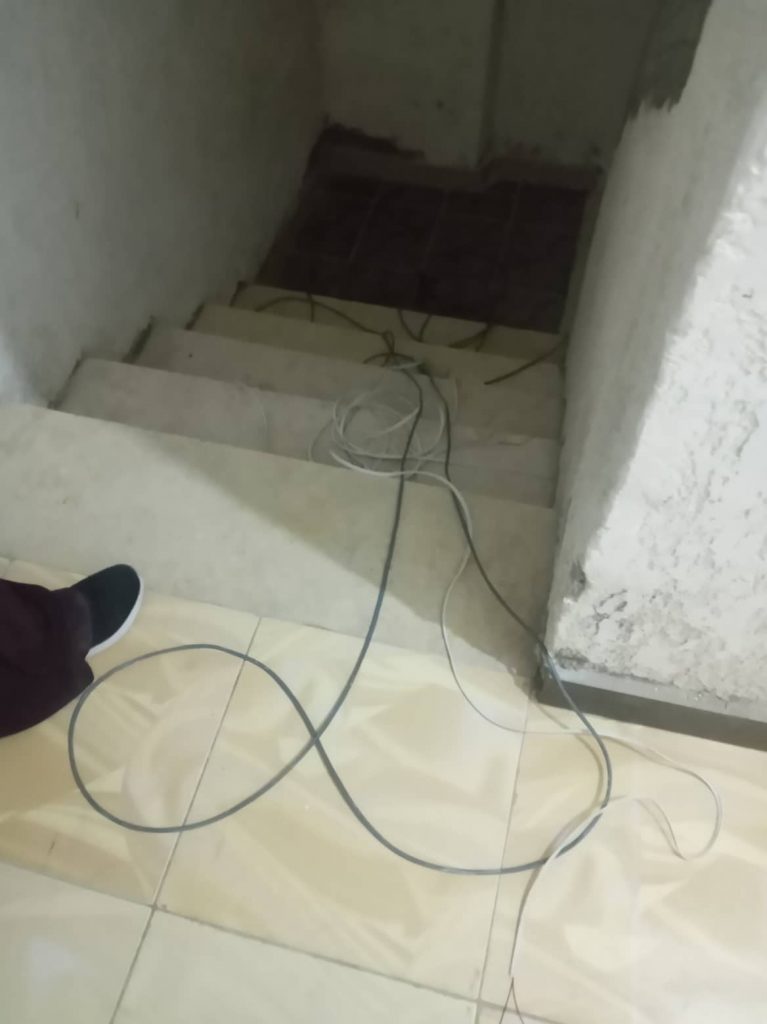 أسلاك الكاميرات والمصعد التى تم تحطيمها