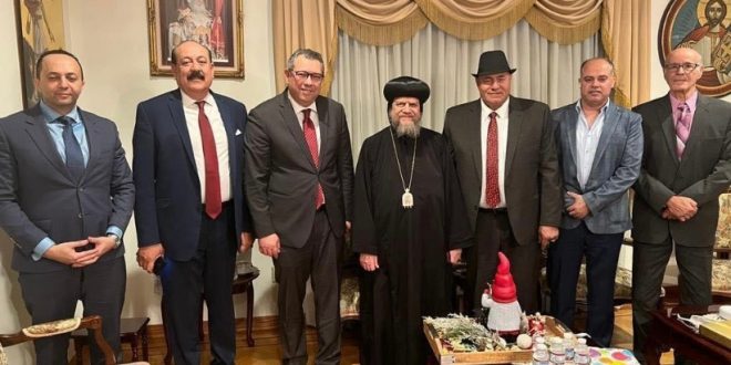 أستقبل نيافة الحبر الجليل الأنبا سرابيون مطران إبيارشية لوس انجلوس وجنوب كاليفورنيا وهاواي ، أمس السبت الموافق ٧ يناير ، وفد من أعضاء القنصلية العامة بمدينة لوس انجلوس ، يتقدمه سعادة السفير أحمد شاهين قنصل عام جمهورية مصر العربيه بلوس انجلوس والمستشار محمد طاهر نائب السفير ، لتقديم التهنئة لنيافته والكنيسة القبطية بمناسبة عيد الميلاد المجيد ٢٠٢٣ ، بحضور أساقفة عموم الإيبارشية ، لفيف من كهنة الكنيسة وعدد من أعضاء الإتحاد العام للمصريين بالخارج