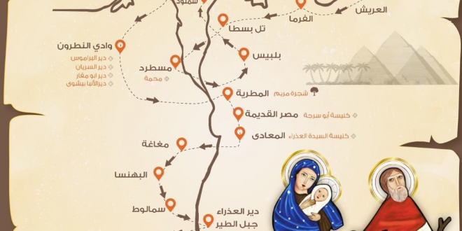 وفي رحلة مثيرة وعجيبة صارت قافلة العائلة من بيت لحم اليهودية هرباً من هيرودس إلى أقصى صعيد مصر!! صارت القافلة في طرق جبلية شاقة أي طرق برية، وأيضًا في طريق نهري إلى صعيد وتركت العائلة في كلة محطة لها علامات مازلت حتى يومنا هذا محط أنظار العالم!