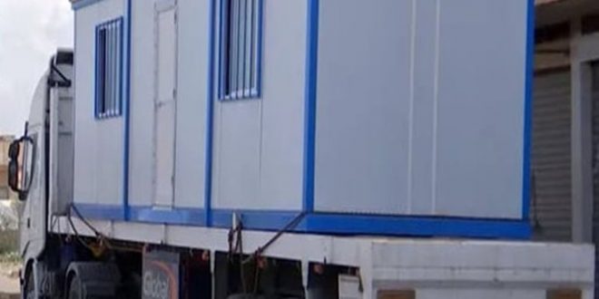 حيث “اصطفاف شاحنات تحمل منازل متنقلة أمام الجانب المصري من معبر رفح