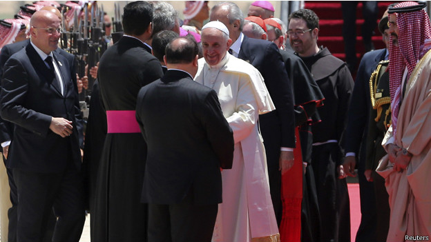 حيث أطل من الشرفة ثم تجول بسيارته بين الناس في الساحة، حيث احتشد آلاف المؤمنين للاحتفال بالعيد.