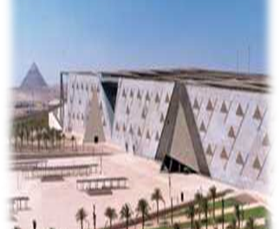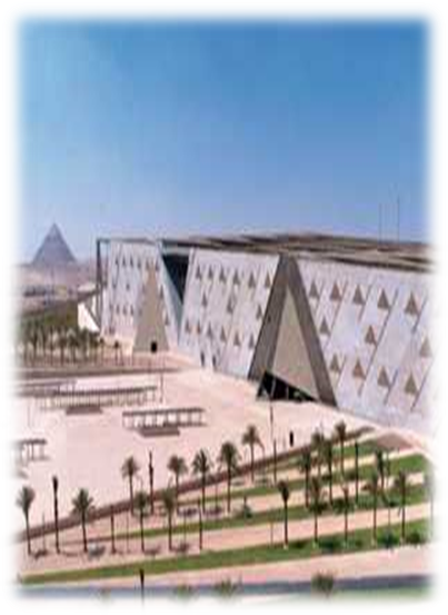 التي تتلاقى لتشكل كتلة المتحف، في تناغم رمزي يجسد الخلود المصري.