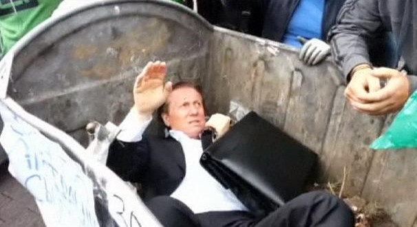 أمسكت مجموعة من الرجال الغاضبين بالنائب الأوكراني فيتالي زهورافسكي، عضو حزب المناطق، الكتلة السياسية للرئيس السابق فيكتور يانوكوفيتش، ورمته في حاوية للقمامة.