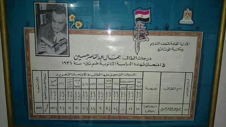 تداول نشطاء عبر مواقع التواصل الاجتماعي “فيس بوك” و تويتر صورة شهادة الرئيس الراحل جمال عبد الناصر .