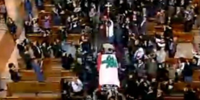 رقص مشيعو جثمان الفنانة الراحلة، صباح، على أنغام الدبكة، أثناء نقل جثمانها من منطقة الحازمية إلى العاصمة، بيروت، الاثنين، لبدء مراسم الجنازة بقداس في الكاتدرائية المارونية.