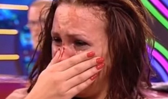 فقد متسابق أعصابه بأحد برامج المسابقات بقناة روسية وقام بصفع منافسته وطرحها أرضًا على الهواء الأمر الذي تسبب في إحداث إصابة ونزيف بوجهها.