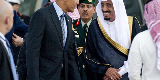ذهب الملك سلمان لاستقبال أوباما وقام بالسلام عليه وسرعان ما غادر المكان وترك أوباما وحيدا هو وزوجته، بينما ظل حرس الشرف يعزف الموسيقي ووقف أوباما وحيدا ليقترب إليه أحد مرافقية ويتحدث معه وتبدوا علي الجميع علامة الدهشة من تصرف ملك السعودية الجديد، يذكر أن موقف الحكومة الأمريكية من الإخوان ومن الثورة المصرية هو نقطة خلاف رئيسية بين السعودية وأمريكا، بالإضافة لعدة خلافات أخري ولكن تبقي الثورة المصرية هي حجر الزاوية في الخلاف بين الدولتين.