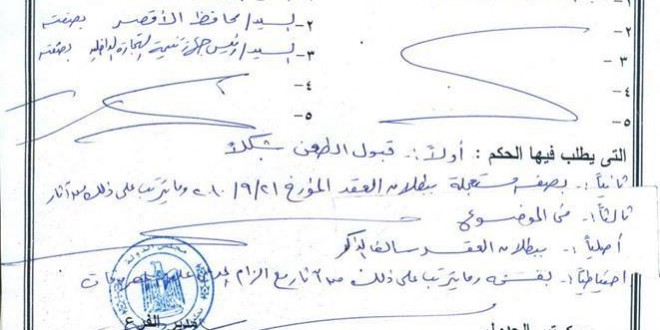 حيث نما الى علم الطاعن أنه قد تم توقيع عقد بيع بين محافظة الاقصر