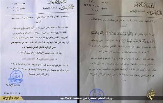 وأشار التقرير إلى قيام ما يسمى بالمحكمة الإسلامية بإقامة الحد على ثلاثة أشخاص من “نينوي” العراق، أحدهما لسب الله، حسبما زعموا، والآخرين للقيام بأفعال “اللواط”.