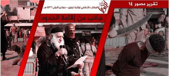 ونشر “داعش” تقريرا مصورا لـ”ولاية نينوي”، المزعومة، بعنوان “جانب من إقامة الحدود”.