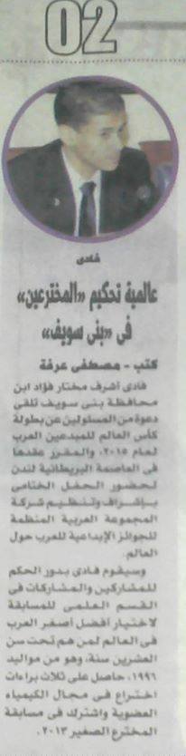 لتكريماً للمخترع الشاب ابن حركة شباب كريستيان للاقباط الارثوذكس التى هى وليدة بنى سويف و ابن بنى سويف المخترع فادى اشرف مختار نرشحة لمقابلة قداسة البابا تواضروس الثانى و تكريمة على النجاح الذى حققة من اجل اسم مصر و المصريين و جهودة المبزولة .