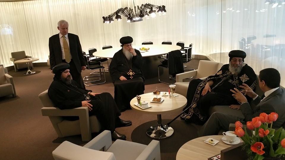 كان في وداع قداسته بمطار أمستردام السيد طاهر فرحات سفير مصر في هولندا