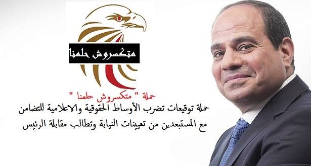 دشن عدد من النشطاء الحقوقيين والسياسيين والكتاب والصحفيين والمستبعدين من تعيينات النيابة العامة حملة حاشدة بعنوان” متكسروش حلمنا ” لمطالبة الرئيسي المصري عبد الفتاح السيسي بسرعة التدخل العاجل في الجريمة التي تعرض لها قرابة “138 ” شخصا من المرشحين للنيابة العامة باستبعادهم من التعيين استنادا إلى مؤهل الوالدين ،