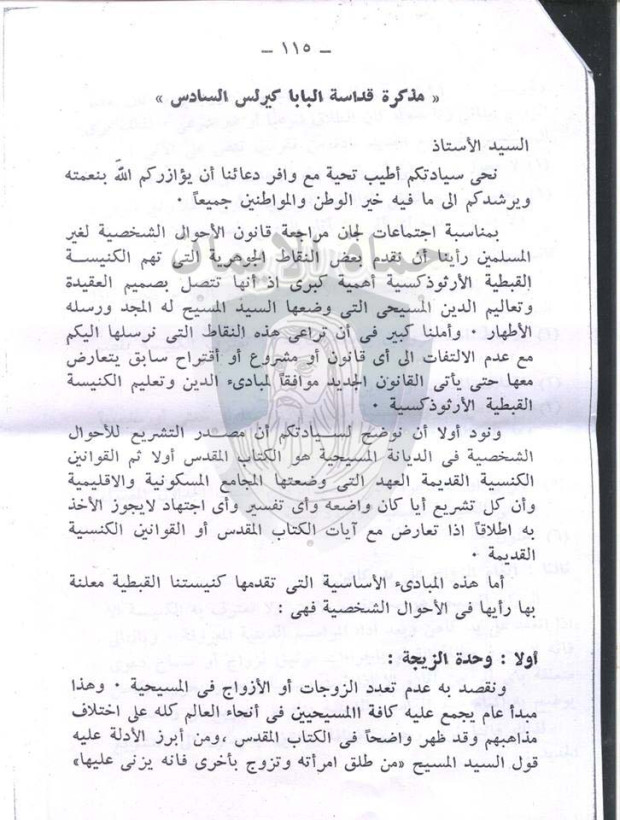 وتأكيداً لمطلب الأقباط فى هذا الصدد أرسلت صورة ثالثة من نفس مذكرة البابا