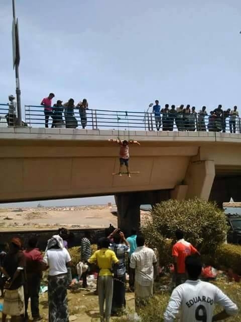 قامت داعش اليمن بإعدام سعوديان بطريقة بشعه وتركتهما ملعقين بعد إتهامهم بالعماله على خلفية مقتل الوحيشي وتصلب احدهما على جسر عام .