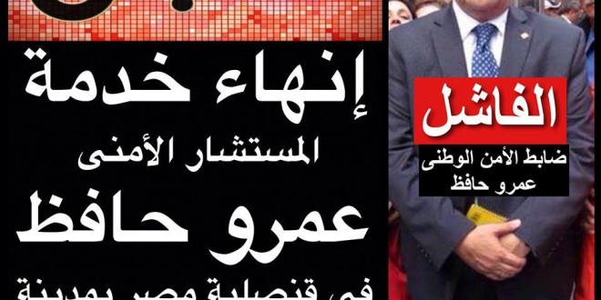قامت الخارجية المصرية بإرسال خطاب الى قنصليتها بمدينة نيويورك يفيد بإنهاء تكليف المستشار الأمنى عمرو حافظ و إنهاء خدمته بالقنصليه و العوده الى مصر قبل نهاية الشهر الحالى