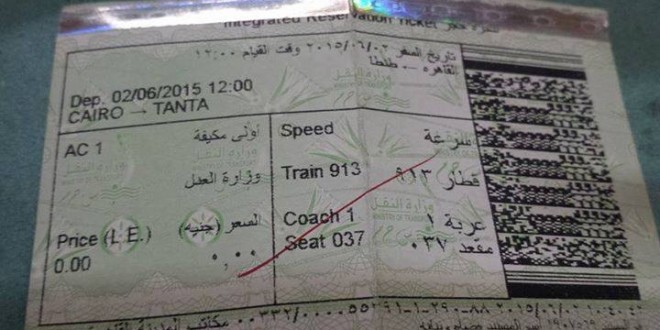 نشر النشطاء صورة لتذكرة قطار لقاضى مجانية حيث قالوا كيف يكون قاضى ومرتبه يفوق ال 10 ألاف جنية فى بدأية التعيين وبعد كده بيوصل الى 30 ألف ويحصل على تذكرة قطار مجانية غير أنه بيأخذ تذكرة أتوبيس مجانية وكمان معاه بطاقة تموين فى حين ان الفقراء المستحقون لهذه البطاقة لايحصلون عليها دا غير الحصانة الكاملة ؟؟ فهل هذه بدأية حملة لإلغاء التذكرة المجانية للقضاء من قبل وزير العدل أم يبادر القضاء أنفسهم بإلغاء هذه الميزه التى يستحقها فقراء مصر .