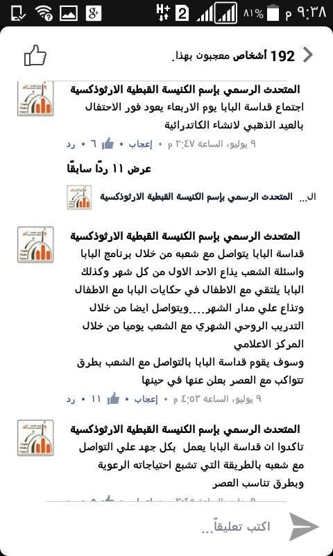 عفوا قداسة البابا ما قلتة قداستكم نصا هو عبارة عن البيان الصادر من الحركة عندما تحدثنا فية عن انة “ليس من العقل أو المنطق أن ينتظر الشعب حتى 2018 ثلاثة سنوات للتواصل مع أبيهم البطرك”