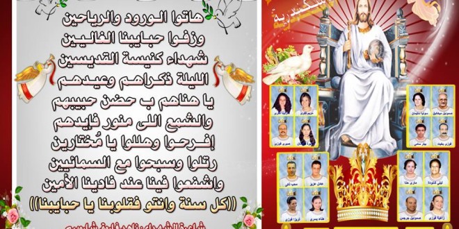 ((اليوم يوافق الذكرى السنوية الخامسة لشهداء كنيسة القديسين بالاسكندرية ))